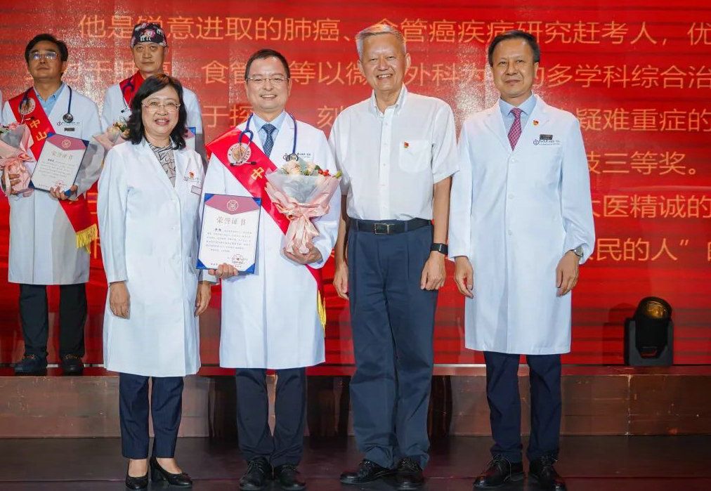 為展現(xiàn)醫(yī)務(wù)人員精神風(fēng)貌,帶動(dòng)感召?gòu)V大員工崇尚先進(jìn)、學(xué)習(xí)先進(jìn)、爭(zhēng)當(dāng)先進(jìn),醫(yī)院評(píng)選并表彰了23名在推動(dòng)醫(yī)院高質(zhì)量發(fā)展過程中做出突出成績(jī)的“附屬第一醫(yī)院好醫(yī)生”。曾進(jìn)勝副院長(zhǎng)宣讀了《中山大學(xué)附屬第一醫(yī)院關(guān)于表彰2021-2022年度中山一院好醫(yī)生的決定》,陳春聲、肖海鵬、駱騰為好醫(yī)生頒獎(jiǎng)。