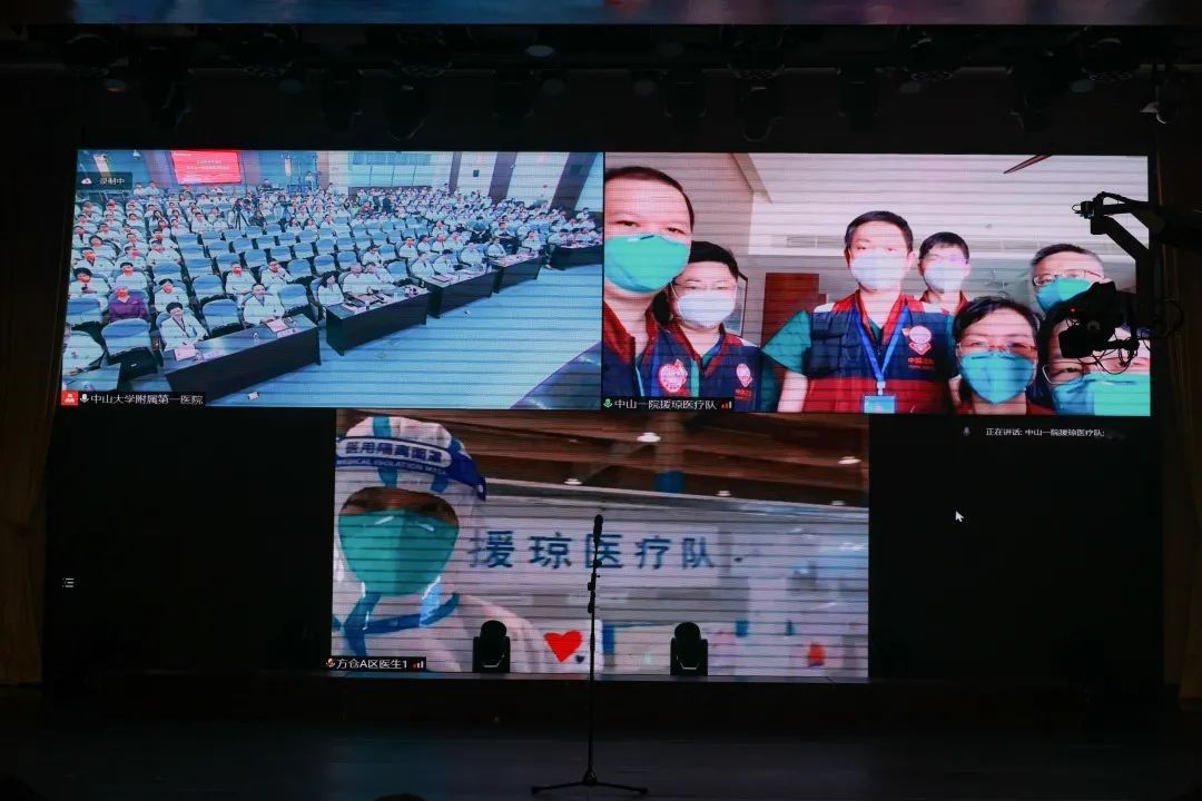 大會(huì)與援瓊醫(yī)療隊(duì)進(jìn)行現(xiàn)場(chǎng)連線(來(lái)源:附屬第一醫(yī)院)