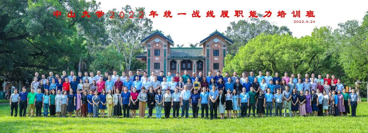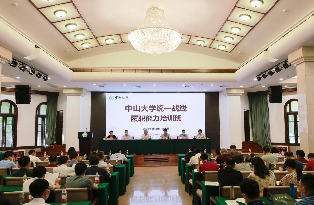 中大新聞網廣州9月27日電(通訊員何婉文)為深入開展“喜迎二十大 同心跟黨走”主題教育,引導我校統(tǒng)一戰(zhàn)線成員不斷增進對中國共產黨和中國特色社會主義的政治認同、思想認同、理論認同、情感認同,以實際行動做好中國共產黨的好參謀、好幫手、好同事。9月24日上午,中山大學2022年統(tǒng)一戰(zhàn)線履職能力培訓班開班儀式暨學習貫徹中央統(tǒng)戰(zhàn)工作會議精神專題輔導報告會在廣州校區(qū)南校園懷士堂舉行。學校各民主黨派省直基層組織、統(tǒng)戰(zhàn)團體全體班子成員、學校統(tǒng)戰(zhàn)工作領導小組成員單位負責人、各二級黨組織書記和統(tǒng)戰(zhàn)委員共200人參加。開班儀式由黨委統(tǒng)戰(zhàn)部常務副部長呂雅璐主持,學校黨委書記陳春聲,省知聯(lián)會副會長、我校副校長邰忠智,廣東省委統(tǒng)戰(zhàn)部黨派處處長姜員平,省委教育工委組織處調研員彭達,學校黨委組織部部長楊曉萌等出席了開班儀式。