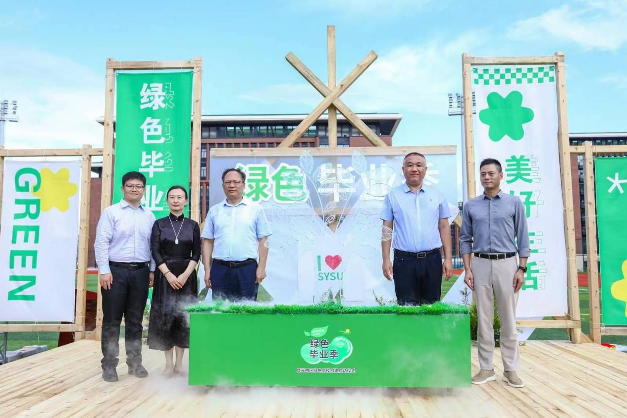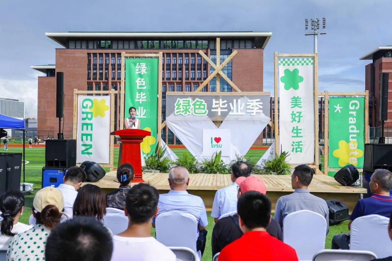中大新聞網(wǎng)訊(通訊員黃韜、鞏文淼、曹曼琦)為建設(shè)綠色高校,培育綠色文化,打造綠色生活,6月19日,中山大學(xué)深圳校區(qū)首屆綠色畢業(yè)季暨光明區(qū)綠色高校創(chuàng)建啟動(dòng)儀式于中山大學(xué)深圳校區(qū)東田徑場舉行。深圳市生活垃圾分類管理事務(wù)中心處長胡振華,光明區(qū)城市管理和綜合執(zhí)法局局長丁鳳鵬,光明區(qū)城市管理和綜合執(zhí)法局副局長彭正明,新湖街道黨工委副書記何東,中山大學(xué)深圳校區(qū)管理委員會(huì)副主任王莉娜,中山大學(xué)先進(jìn)能源學(xué)院直屬黨支部副書記張洋,以及來自中山大學(xué)深圳校區(qū)各個(gè)學(xué)院的師生代表出席了本次活動(dòng)。