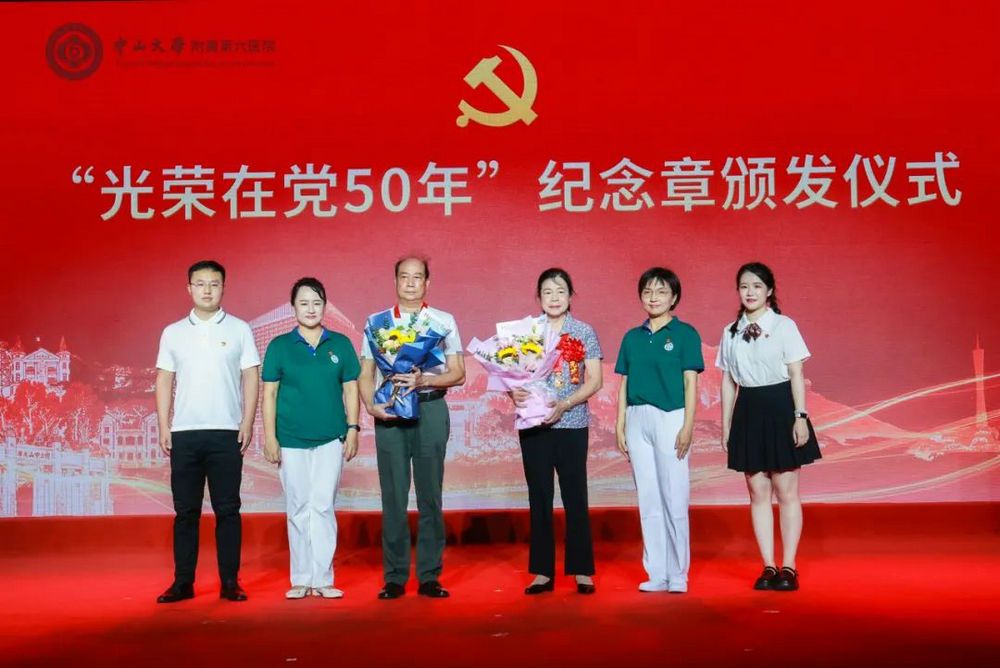 晚會上,還發(fā)布了《學思想 強黨性 重實踐 建新功——中山六院首批共產(chǎn)黨員示范崗巡禮》微視頻,并為2名黨齡滿50周年老黨員頒發(fā)“光榮在黨50年”紀念章。由院領(lǐng)導(dǎo)、黨支部書記與中六醫(yī)護組成的合唱團齊唱《唱支山歌給黨聽》,頌歌獻給黨,建功新時代。在悠揚的合唱聲中,主題活動圓滿落幕。