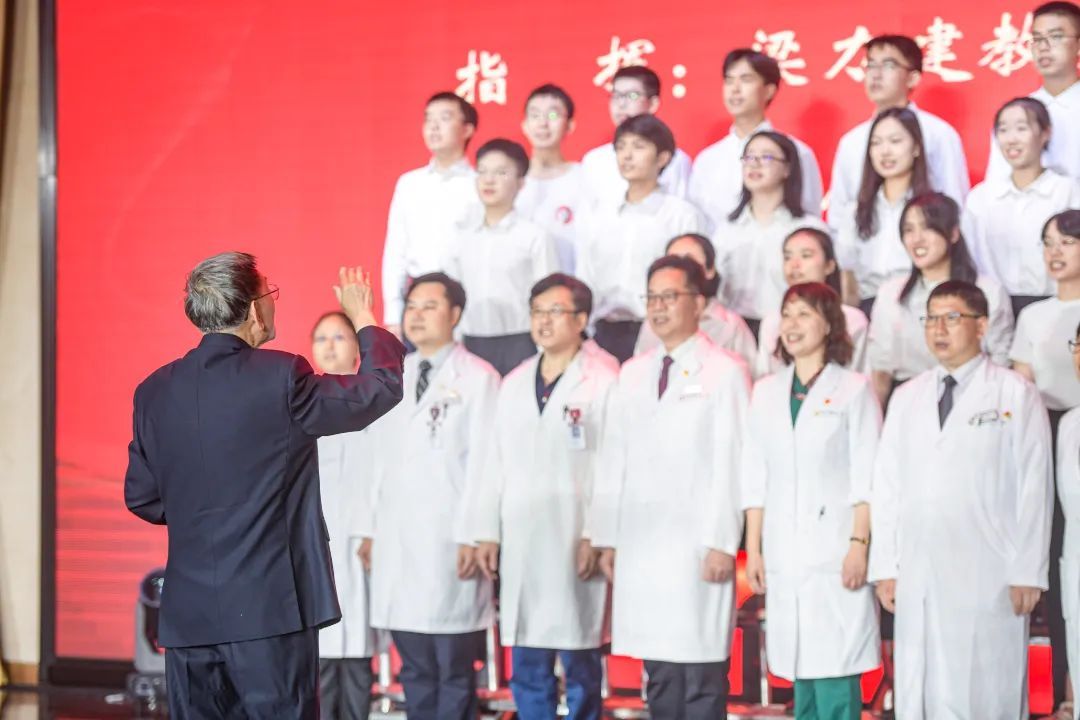 梁力建教授指揮,歷屆中山一院好醫(yī)生代表、中山醫(yī)學(xué)院學(xué)生合唱團帶來大合唱《中山醫(yī)之歌》