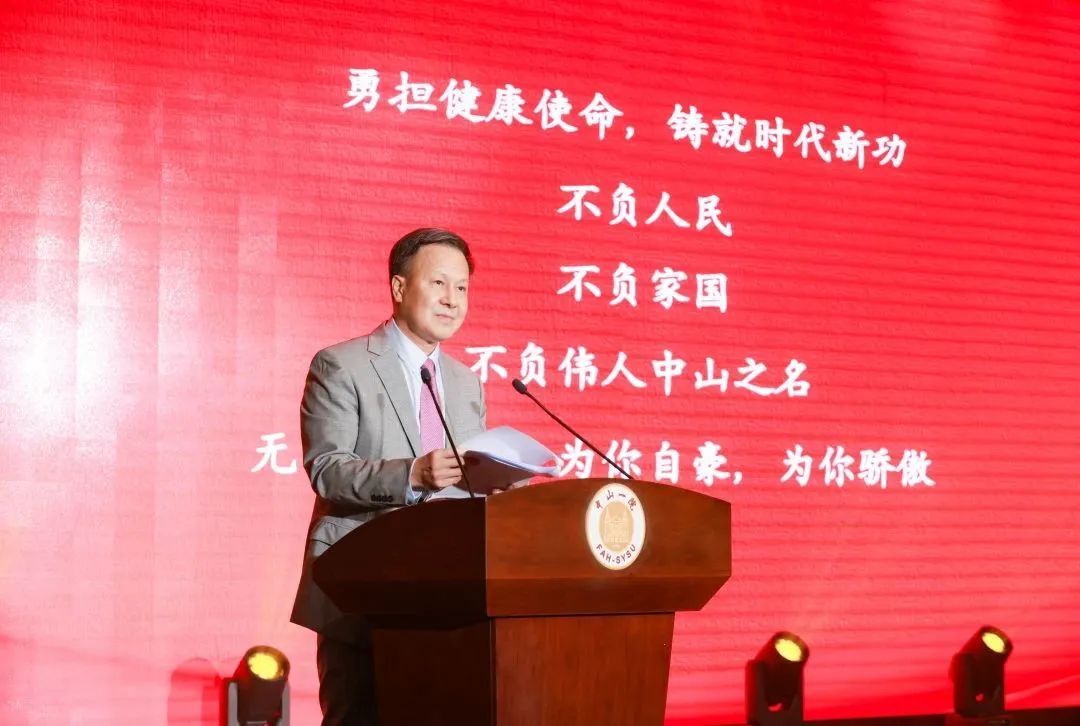 肖海鵬常務(wù)副校長以一段深情的詩朗誦拉開了大會的帷幕,“從沒有這樣一群人,他們普救含靈之苦,他們懷大慈惻隱之心。他們堅信,人命至重,有貴千金?!彼苗H鏘有力的話語道出了醫(yī)者的大愛與情懷,寄望全院醫(yī)師胸懷“國之大者”,成就“國之大醫(yī)”,獻身“國之大同”,在新時代健康中國建設(shè)的新征程中領(lǐng)航前行,勇?lián)】凳姑T就時代新功,不負(fù)人民,不負(fù)家國,不負(fù)偉人中山之名。