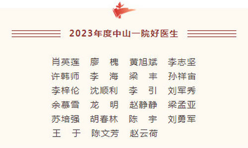 ▲2023年度“中山一院好醫(yī)生”名單(排名不分先后)