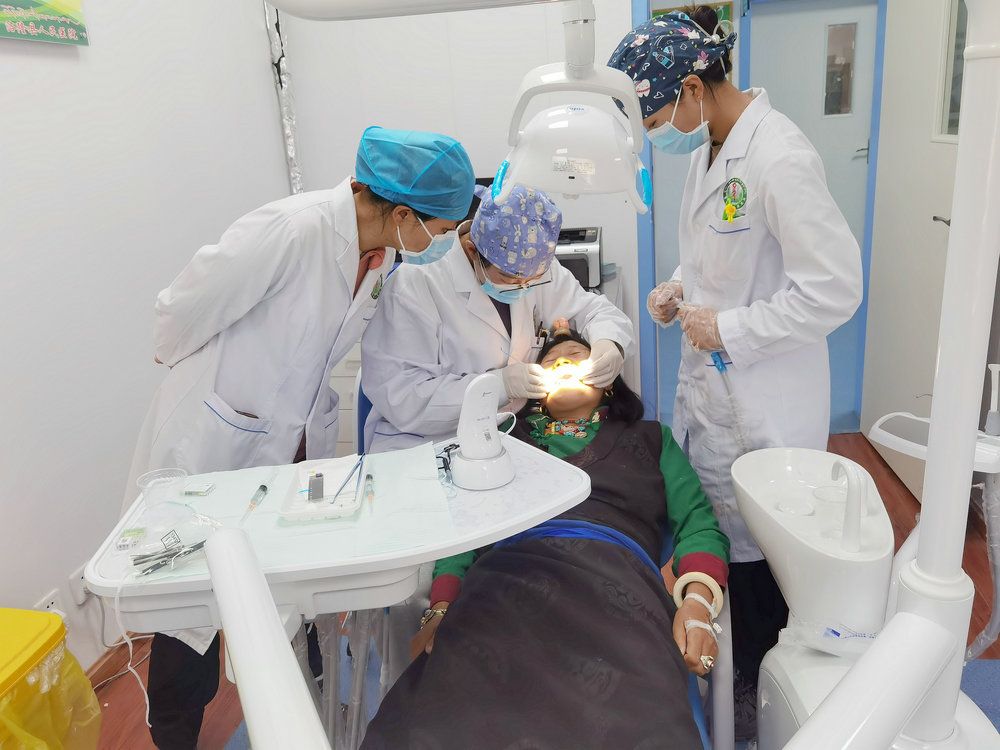 “這是我到這里來(lái)的使命,我一定要把口腔科建起來(lái)!”程慧琳抵藏后暗下決心。她第一時(shí)間對(duì)當(dāng)?shù)鼐用窨谇唤】禒顩r及預(yù)防治療情況開(kāi)展調(diào)研,發(fā)現(xiàn)當(dāng)?shù)馗髂挲g段的口腔疾病存在發(fā)病率高、診治率低的特點(diǎn),又因醫(yī)療隊(duì)所在的洛隆縣從縣城前往三百公里外的昌都市區(qū)又需要驅(qū)車(chē)六個(gè)小時(shí),既增加了患者看病耗費(fèi)的時(shí)間,也極易拖延加重病情。