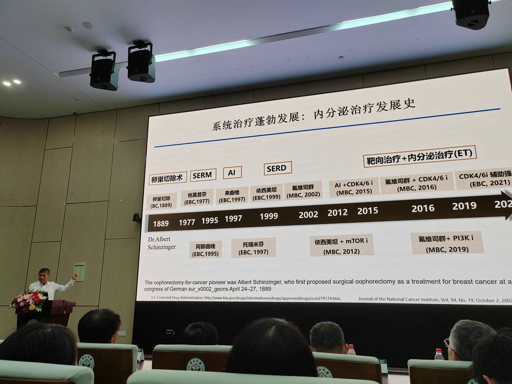 宋爾衛(wèi)院士的講座從古老文明對(duì)“腫瘤”的描述展開,介紹了《黃帝內(nèi)經(jīng)》、古埃及時(shí)期、古希臘及古羅馬等對(duì)乳腺癌的描述,并講述了癌癥英文名字“cancer”的起源。從古到今,人們獲得的很多關(guān)于腫瘤的知識(shí)都是從乳腺癌開始的。乳腺癌是人類癌癥發(fā)病率最高的惡性腫瘤。這大概是因?yàn)槿橄侔┖推渌麅?nèi)臟腫瘤不同,它的解剖位置相對(duì)表淺,長(zhǎng)期以來被當(dāng)作癌癥研究的模式腫瘤。因此,各國政府對(duì)于乳腺癌的研究非常重視,美國國家癌癥研究所(National Cancer Institute,NCI)每年給乳腺癌研究的經(jīng)費(fèi)支持占總研究經(jīng)費(fèi)的9.7%到13.7%,遠(yuǎn)超其它腫瘤;我國國家自然科學(xué)基金委員會(huì)也在逐年增加對(duì)乳腺癌研究的資助力度。在各國科學(xué)家堅(jiān)持不懈的努力之下,乳腺癌研究不斷取得新的突破,并促成和推動(dòng)了人類認(rèn)識(shí)癌癥和治療癌癥的幾次重要飛躍。宋爾衛(wèi)院士以乳腺癌治療的四次革命為邏輯線路,講述了乳腺癌臨床治療的歷史沿革和革新,即從局部疾?。焊牧几涡g(shù)到全身性疾?。罕H楦涡g(shù);從異質(zhì)性疾?。壕珳?zhǔn)個(gè)體化治療到宋爾衛(wèi)院士提出的腫瘤生態(tài)學(xué):腫瘤生態(tài)治療。現(xiàn)如今,中國的乳腺癌研究正引領(lǐng)新一輪癌癥治療革命,中國科學(xué)家們將擔(dān)負(fù)起“剖析腫瘤生態(tài)系統(tǒng)本質(zhì),探索腫瘤生態(tài)理論和生態(tài)治療新策略”的歷史使命。