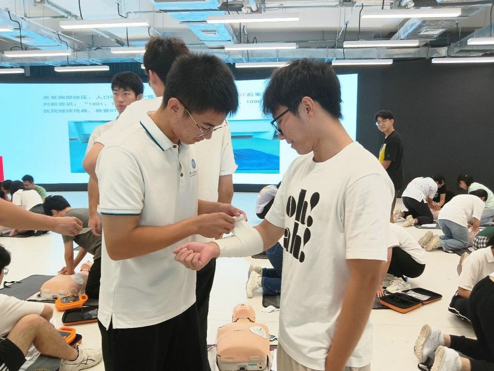 中大新聞網(wǎng)訊(通訊員蔣夢婷、黃嘉儀)9月9日是第24個(gè)世界急救日。為進(jìn)一步提升大學(xué)生的急救意識和急救能力,醫(yī)學(xué)院在深圳校區(qū)醫(yī)學(xué)園開展了以“數(shù)字賦能、救在身邊”為主題的世界急救日急救培訓(xùn)活動(dòng)。活動(dòng)包含模擬考站參觀、CPRD(心肺復(fù)蘇與自動(dòng)體外除顫)理論講解、急救包扎理論講解、CPRD實(shí)操培訓(xùn)以及CPRD實(shí)操考核等內(nèi)容。