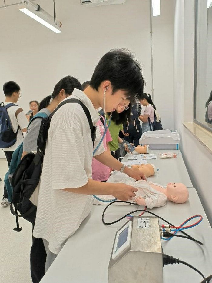 隨后在老師和輔助導(dǎo)師志愿者的指導(dǎo)下,同學(xué)們逐步學(xué)習(xí)并親自操作CPRD培訓(xùn)設(shè)備進(jìn)行模擬心肺復(fù)蘇訓(xùn)練。通過反復(fù)的實(shí)操練習(xí),學(xué)生們逐漸掌握了正確的手法和步驟。