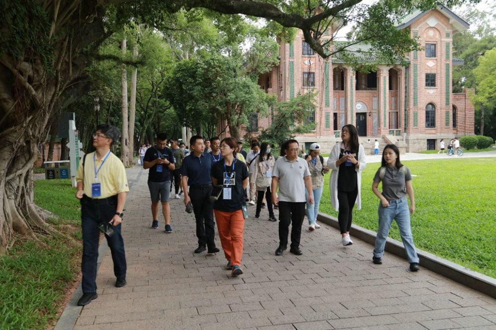 參訪團一行沿著紅磚綠瓦、樹木蔥蘢的校園中軸線,先后參觀懷士堂、黑石屋、馬丁堂等歷史建筑群。隨后,參訪團一行參觀了中山大學(xué)校史陳列館和博物館。在校史陳列館,參訪團成員在一幅幅圖片、一份份資料、一件件展品前不時駐足觀看,切身感受中山大學(xué)近百年的歷史沿革和發(fā)展歷程。在博物館,參訪團一行參觀了“我們這五年”主題展覽,了解中山大學(xué)近五年的重要發(fā)展成就和改革發(fā)展經(jīng)驗,感受學(xué)校心懷“國之大者”,奮進一流前列的故事。