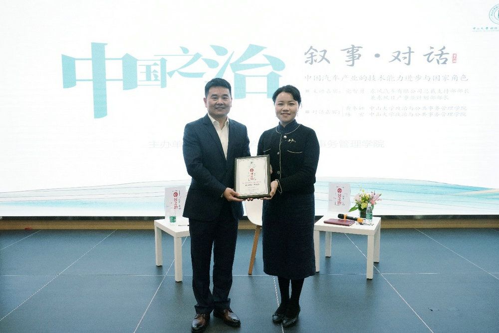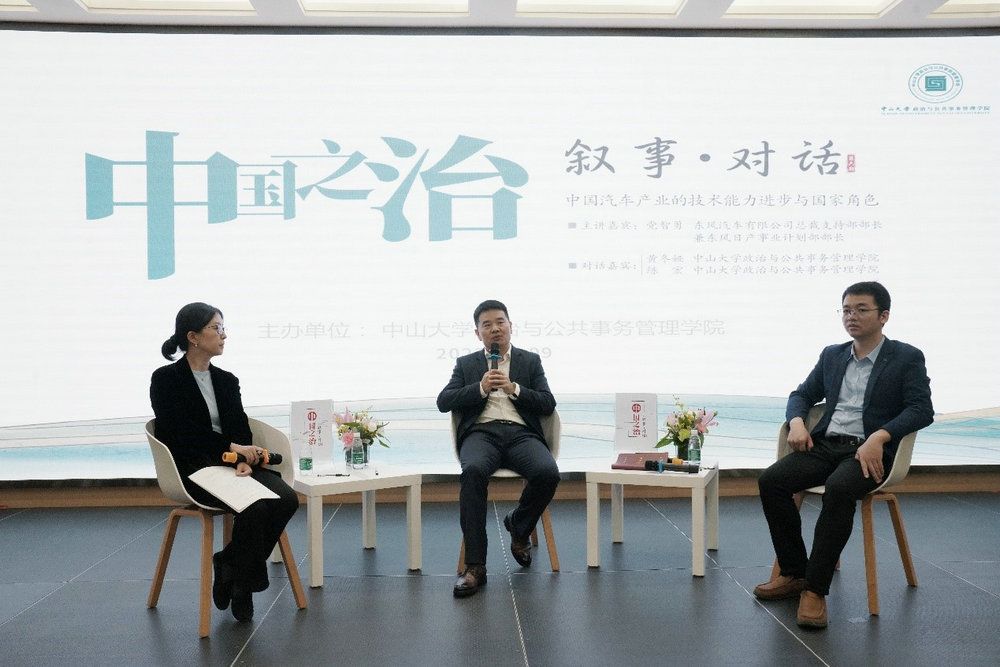 中大新聞網(wǎng)訊(通訊員鄭健堅)12月9日,中山大學(xué)政治與公共事務(wù)管理學(xué)院(以下簡稱“政務(wù)學(xué)院”)成功舉辦“中國之治:敘事·對話”第六期活動。本次活動邀請東風(fēng)汽車有限公司總裁支持部部長兼東風(fēng)日產(chǎn)事業(yè)計劃部部長黨智勇作為主講嘉賓,演講主題是“中國汽車產(chǎn)業(yè)的技術(shù)能力進步與國家角色”。為更好促進治理之學(xué)與治理實踐良性互動,推動實踐者與研習(xí)者雙向反思,本期活動邀請了政務(wù)學(xué)院副院長黃冬婭教授與練宏副教授參與對話交流,就企業(yè)發(fā)展模式、技術(shù)創(chuàng)新能力、國家角色扮演和職業(yè)生涯規(guī)劃等主題展開熱烈討論。政務(wù)學(xué)院院長譚安奎教授、黨委書記羅晶、團委副書記盧世榮出席本次活動,政務(wù)學(xué)院全日制本科生、研究生、MPA學(xué)生積極參與?;顒佑删毢旮苯淌谥鞒?。