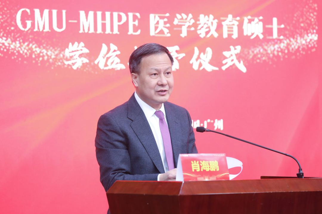 中山大學(xué)常務(wù)副校長、中山一院院長肖海鵬教授,中山大學(xué)校長助理、中山醫(yī)學(xué)院院長、中山一院副院長匡銘教授,中山醫(yī)學(xué)院黨委書記郝雅娟,中山醫(yī)學(xué)院醫(yī)學(xué)教育發(fā)展中心主任王庭槐教授,中山醫(yī)學(xué)院副院長王淑珍教授,AMEE前主席Trevor Gibbs教授,GMU校長Hossam Hamdy教授(線上)出席學(xué)位授予儀式,各臨床教研室代表、一線臨床教師代表、中山醫(yī)學(xué)院黨政部門負責(zé)人及骨干教師代表、中山一院相關(guān)職能部門代表參加典禮。