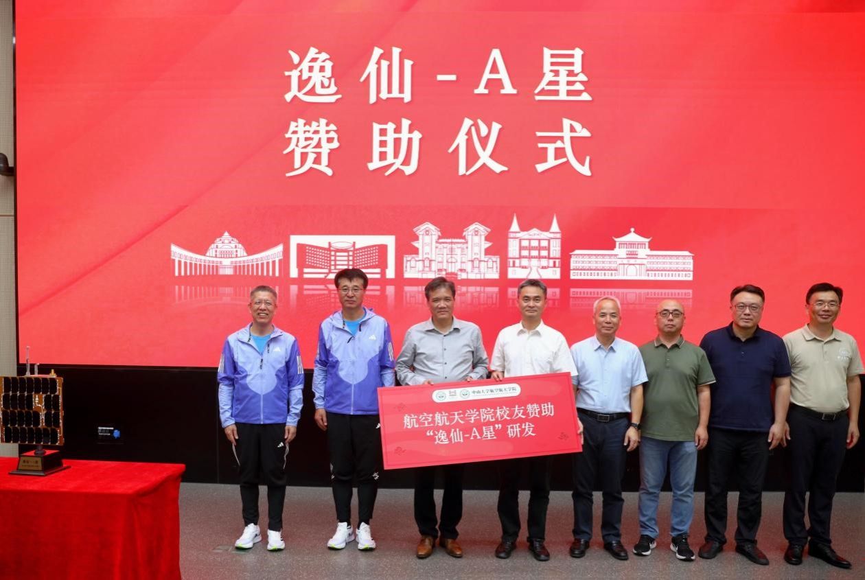 會上舉行逸仙-A星贊助儀式。航空航天學院校友會名譽會長陳光明代表學院校友理事會向吳志剛院長交接了贊助“逸仙-A星”研發(fā)的銘牌,并與學校領導、學院領導、校友代表一起合影留念。