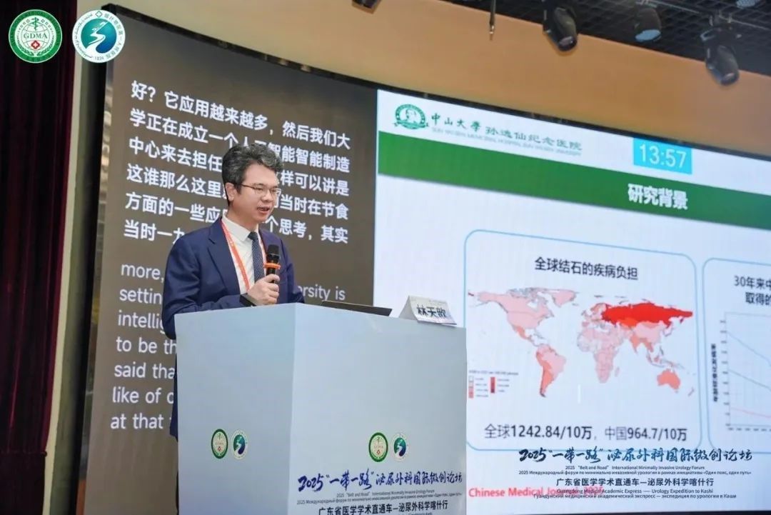 期間,林天歆代表廣東省醫(yī)學(xué)會泌尿外科學(xué)分會進一步回顧了粵喀兩地泌尿外科專業(yè)的合作與交流工作,分享了成熟的協(xié)作幫扶模式,并以《AI輔助診斷在泌尿系結(jié)石中的應(yīng)用》為題進行學(xué)術(shù)講座。