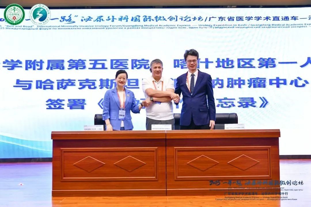 中大新聞網(wǎng)訊(通訊員王月嬌、姜鑫)隨著“一帶一路”倡議下國際醫(yī)療衛(wèi)生合作的不斷深化,區(qū)域間醫(yī)療資源共享、技術(shù)協(xié)同需求持續(xù)升溫,8月22日,在2025年“一帶一路”泌尿外科國際微創(chuàng)論壇暨廣東省醫(yī)學(xué)學(xué)術(shù)直通車-泌尿外科學(xué)喀什行活動中,附屬第五醫(yī)院、喀地一院與哈薩克斯坦阿斯塔納腫瘤中心、哈薩克斯坦阿拉木圖市兒童急救中心、塔吉克斯坦杜尚別市衛(wèi)生局伊斯特克洛爾醫(yī)療中心分別簽署了《友好合作備忘錄》。