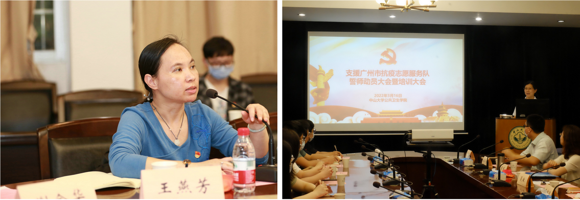 左圖:黨委副書記王燕芳同志主持會議;右圖:團委書記謝金華老師介紹基本情況(來源:公共衛(wèi)生學院)