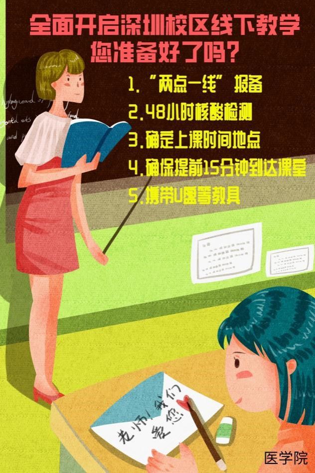 據(jù)悉,為了嚴格落實學校關于深圳校區(qū)全面啟動線下授課的通知精神,醫(yī)學院于5月7日晚專門召開全面恢復線下教學工作緊急會議,要求所有老師全面恢復線下授課,明確線上授課只針對未返校學生。5月8日上午,醫(yī)學院召開了學院教學督導線上會議,對相關工作進行了周密部署,并提出嚴格要求。為了給進入深圳校區(qū)授課的老師提供清晰指引,醫(yī)學院湯地副院長還精心制作了線下授課宣傳海報。