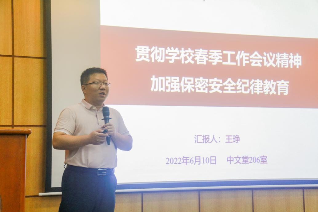 王琤書記帶領(lǐng)全體教職工重溫了習(xí)近平總書記“四有”好老師的要求,他表示,中文系要貫徹落實(shí)春季工作會議精神,堅(jiān)持黨的領(lǐng)導(dǎo),結(jié)合新形勢、新挑戰(zhàn),做好高層次人才引進(jìn)和培養(yǎng)工作,深入理解通識教育與專業(yè)教育相融合、學(xué)科交叉融合等對人才培養(yǎng)工作的重要意義,深刻把握好國際化國際合作辦學(xué)和扎根中國大地辦學(xué)的辯證關(guān)系。王琤書記還對全體教職員工進(jìn)行了保密、安全、紀(jì)律和師德警示專題教育。