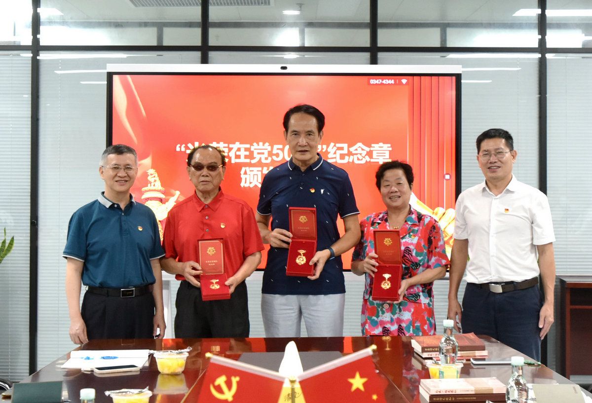 梁建、林賢嬌、劉泉新三位老黨員代表獲頒“光榮在黨50年”紀(jì)念章(來源:附屬第八醫(yī)院)