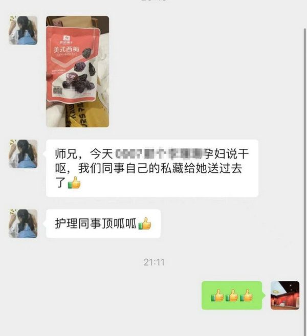 護(hù)理部護(hù)士宋理送西梅微信工作群截圖(來源:附屬第三醫(yī)院)