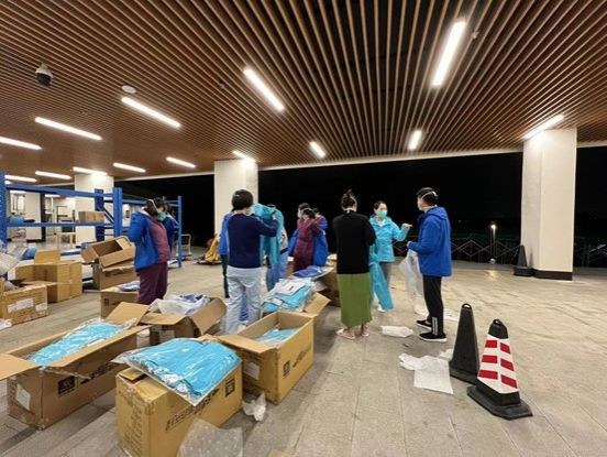 “今天天氣轉(zhuǎn)涼,醫(yī)院非常牽掛隊(duì)員們的身體情況,醫(yī)院今晚將連夜派送沖鋒衣給大家御寒,后勤組的同事會第一時間送到您手上?!备鳖I(lǐng)隊(duì)、院長助理彭亮在群里發(fā)出通知,林育梅護(hù)長帶領(lǐng)后勤保障隊(duì)員連夜為中山三院的醫(yī)療隊(duì)員派送了沖鋒衣。