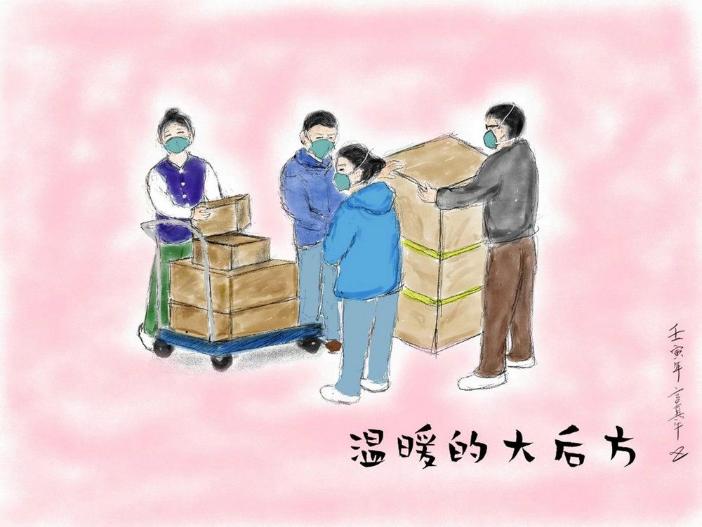 溫暖的大后方(繪圖:附屬第三醫(yī)院感染科許鎮(zhèn))