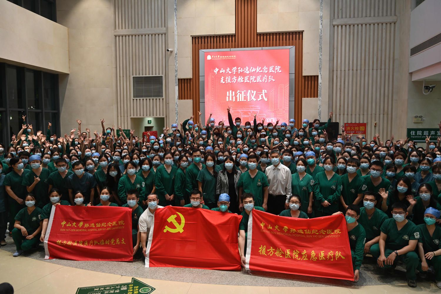 在接到派遣醫(yī)療隊(duì)的任務(wù)后,孫逸仙紀(jì)念醫(yī)院各科室醫(yī)生、護(hù)士第一時(shí)間自愿報(bào)名,隊(duì)伍迅速組建完畢。醫(yī)療隊(duì)將單獨(dú)接管一個(gè)新建的2500床方艙醫(yī)院,用于開展新冠肺炎感染者醫(yī)療救治和護(hù)理工作。副院長(zhǎng)姚和瑞教授擔(dān)任醫(yī)療隊(duì)領(lǐng)隊(duì),醫(yī)療隊(duì)共有醫(yī)生53人、護(hù)士250人和后勤保障人員56人。