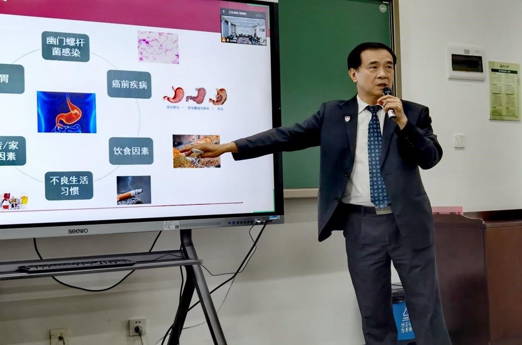 何裕隆院長以“常見腸胃疾病與消化保健”為題,以我國胃癌高發(fā)地區(qū)居民的飲食習(xí)慣為切入點,指出飲食因素、不良生活習(xí)慣、幽門螺旋桿菌感染和家族性遺傳等胃癌高危因素,介紹了目前預(yù)防和治療胃癌和降低胃癌復(fù)發(fā)的主要醫(yī)療技術(shù)手段。他提醒大家一定要養(yǎng)成良好的生活習(xí)慣,注意科學(xué)預(yù)防腸胃病,適時進行胃鏡檢查,及早排除潛在風(fēng)險。