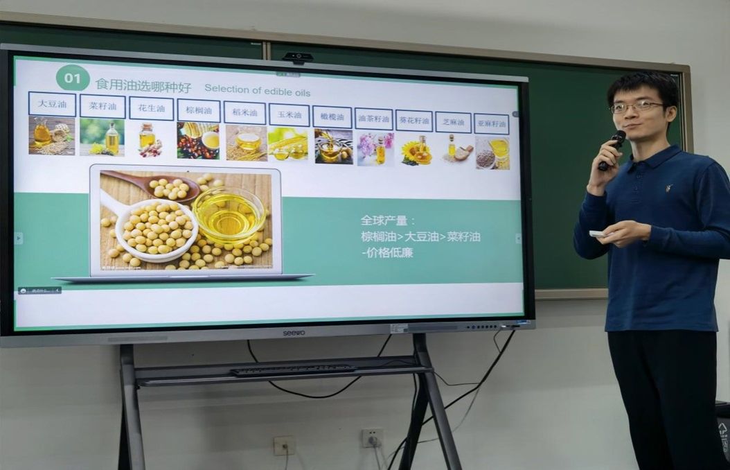 王東皓副教授以“油脂與健康”為題,深入淺出地講解了生活中食物油的種類和特點,如何選擇、合理攝入量和食用方式,特別強調(diào)了煎炸食品和氫化植物油的危害;從食品營養(yǎng)的角度分析了補充DHA的必要性、理性判斷巧克力的營養(yǎng)價值等熱點問題,并提出了不要長時間食用同一種食物油,合理引入高油酸、高亞麻酸食用油及調(diào)和油的建議。