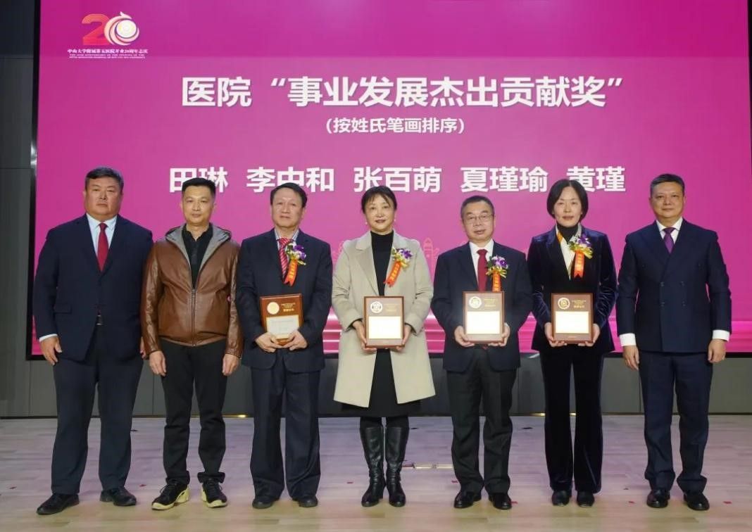 單鴻院長(zhǎng)、苗偉書(shū)記、林偉庭書(shū)記為醫(yī)院“事業(yè)發(fā)展杰出貢獻(xiàn)獎(jiǎng)”獲得者頒獎(jiǎng)