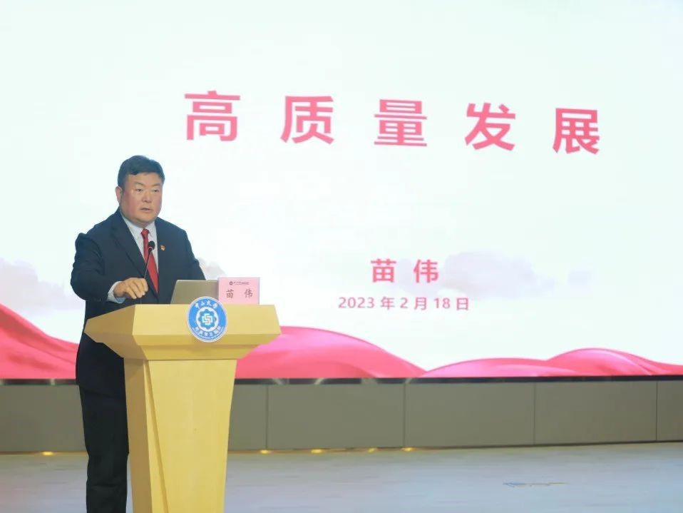 苗偉書記圍繞高質(zhì)量發(fā)展主題作報(bào)告。報(bào)告?zhèn)鬟_(dá)了黨的二十大精神,廣東省、珠海市高質(zhì)量發(fā)展大會(huì)精神,以及學(xué)校關(guān)于高質(zhì)量發(fā)展的工作部署。苗偉書記指出,經(jīng)過全院上下的共同努力,醫(yī)院近年來醫(yī)療服務(wù)能力和服務(wù)水平都邁上了新臺(tái)階,但對(duì)標(biāo)國內(nèi)一流大學(xué)附屬醫(yī)院、對(duì)標(biāo)國內(nèi)一流學(xué)科,醫(yī)院在醫(yī)教研管產(chǎn)等方面工作還存在差距和不足。各學(xué)科要深入了解發(fā)展基礎(chǔ)和背景,明確“從哪來”;要找準(zhǔn)定位和方向,知道“到哪去”;要合理規(guī)劃發(fā)展路徑,清楚“怎么做”。具體而言,就是要注重人才培養(yǎng),引導(dǎo)優(yōu)秀畢業(yè)生留院工作,服務(wù)珠海、服務(wù)廣東、服務(wù)國家,為構(gòu)建“人才高原”打牢基礎(chǔ);要強(qiáng)化臨床科室之間,臨床科室與科研部門之間的協(xié)作溝通,推動(dòng)學(xué)科交叉融通;要通過抓制度建設(shè)、醫(yī)療質(zhì)量建設(shè)、??茖2〗ㄔO(shè)、先進(jìn)技術(shù)提升和文化建設(shè)不斷提高臨床醫(yī)療綜合實(shí)力。全院上下要更加緊密地團(tuán)結(jié)在以習(xí)近平同志為核心的黨中央周圍,深刻領(lǐng)悟“兩個(gè)確立”的決定性意義,增強(qiáng)“四個(gè)意識(shí)”、堅(jiān)定“四個(gè)自信”、做到“兩個(gè)維護(hù)”,為大學(xué)和醫(yī)院高質(zhì)量?jī)?nèi)涵式發(fā)展不懈努力奮斗。