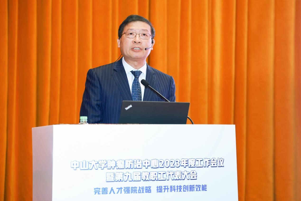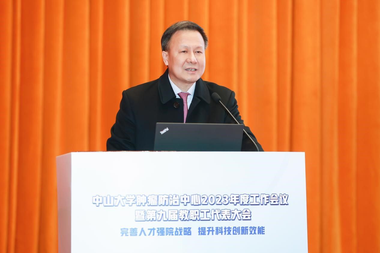 中大新聞網(wǎng)廣州2月27日電(通訊員趙現(xiàn)廷)今年是全面貫徹落實黨的二十大精神的開局之年,為進一步聚焦建設(shè)世界頂尖腫瘤中心的目標,推動中心高質(zhì)量發(fā)展,2月25日,中山大學(xué)腫瘤防治中心2023年度工作會議暨第九屆教職工代表大會順利召開。會議的主題是“完善人才強院戰(zhàn)略,提升科技創(chuàng)新效能”。中心黨政班子、中層干部、科主任導(dǎo)師、單病種首席專家、主診教授、優(yōu)秀人才代表、職代會常設(shè)委員會委員及代表、中腫甘肅醫(yī)院相關(guān)負責(zé)同志等參加了會議。中山大學(xué)常務(wù)副校長肖海鵬到會致辭,中國工程院王辰院士受邀作主題分享。