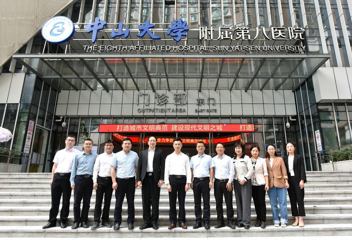 中大新聞網(wǎng)廣州3月29日電(通訊員鄢嫣)3月23日下午,中山大學(xué)教務(wù)部主任陳省平、質(zhì)量處(教材處)副處長周卉、教務(wù)管理處主管王湘君,中山大學(xué)醫(yī)學(xué)院黨委書記丁小球、副院長湯地、副書記李世陽、輔導(dǎo)員金旭、輔導(dǎo)員張悅以及教務(wù)員常明一行到附屬第八醫(yī)院調(diào)研臨床教學(xué)工作,全面了解醫(yī)院作為臨床教學(xué)基地的工作近況。附屬第八醫(yī)院院長沈慧勇、黨委書記林偉庭、副書記吳景立、副院長黃輝、教研室主任、教學(xué)科相關(guān)人員、臨床專業(yè)見習(xí)生和實(shí)習(xí)生代表共35人參加了座談會(huì)。