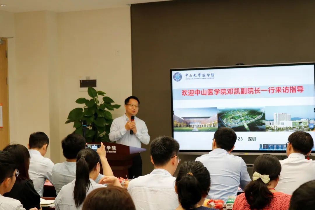 座談會上,田國寶教授首先歡迎中山醫(yī)學(xué)院一行來訪。丁小球書記代表醫(yī)學(xué)院感謝中山醫(yī)學(xué)院全體領(lǐng)導(dǎo)和老師長期以來對醫(yī)學(xué)院的支持和幫助,感謝中山醫(yī)學(xué)院團(tuán)隊前來傳經(jīng)送寶。鄧凱教授分享了北校園科研平臺建設(shè)經(jīng)驗,并表示兩院將攜起手來,加強(qiáng)未來各平臺之間的交流與合作。