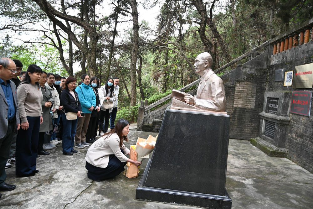 抵達陳心陶紀念地后,全體人員向陳心陶紀念碑鞠躬敬禮,學(xué)生代表敬獻鮮花,表達對陳心陶教授的崇敬與深切緬懷。隨后,隊伍前往初心學(xué)堂進行參觀學(xué)習(xí),初心學(xué)堂生動再現(xiàn)了新中國成立初期陳心陶教授深入疫區(qū)探究防治血吸蟲病方法、組織三水人民參與血防運動,最終消滅血吸蟲病的歷史故事。