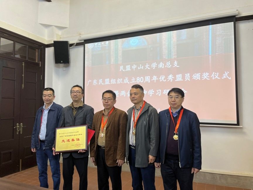 鄭江林二級(jí)調(diào)研員向民盟中山大學(xué)南總支及獲得表彰的盟員頒發(fā)獎(jiǎng)狀與紀(jì)念章