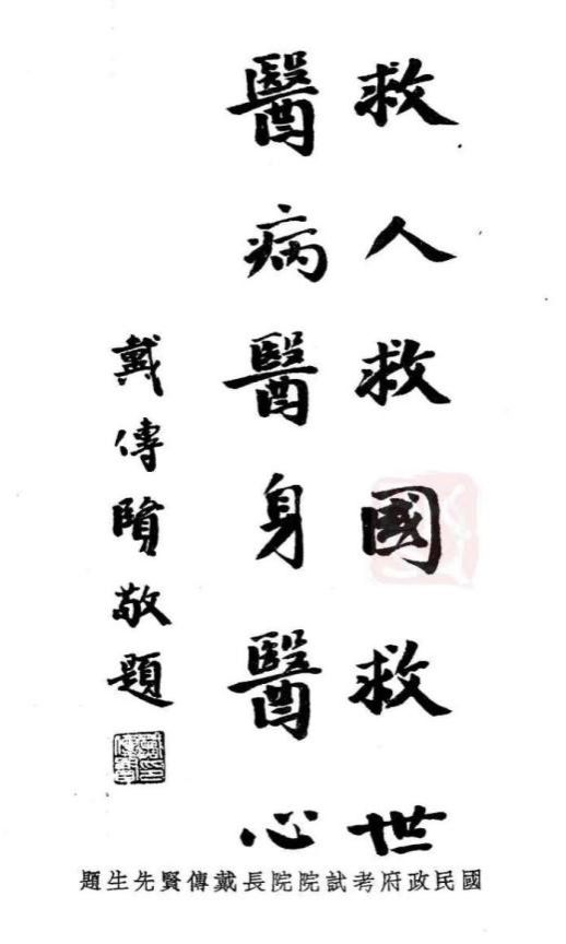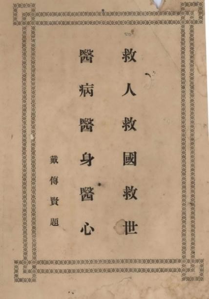的確,在新文化運動前,對聯(lián)的讀法是從右讀至左,但新文化運動后,隨著白話文的問世,對聯(lián)的讀法又遵循從左向右的次序。但從對聯(lián)撰寫的平仄要求來講,應(yīng)該是仄起平回,也就是說上聯(lián)最后一個字應(yīng)是仄音,下聯(lián)最后一個字應(yīng)是平音。這副對聯(lián)是戴校長所撰,按他的學(xué)識修養(yǎng),應(yīng)該懂得遵循對聯(lián)撰寫的平仄要求。我想,這幅對聯(lián)上聯(lián)是“救人救國救世”,下聯(lián)是“醫(yī)病醫(yī)身醫(yī)心”,符合對聯(lián)仄起平回的要求。