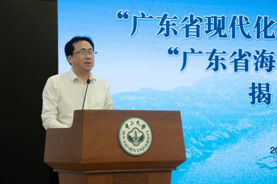 劉棕會(huì)在致辭中指出,本次揭牌儀式是省農(nóng)業(yè)農(nóng)村廳和中山大學(xué)共同推動(dòng)科技和產(chǎn)業(yè)融合的新路徑,是認(rèn)真落實(shí)省委1310具體部署的務(wù)實(shí)舉措,也是雙方全面加強(qiáng)產(chǎn)學(xué)研合作的重要里程碑。他介紹了一年來(lái)廣東省現(xiàn)代化海洋牧場(chǎng)建設(shè)取得的突出成效,高度肯定了中山大學(xué)在海洋漁業(yè)領(lǐng)域雄厚的科研實(shí)力、一流的學(xué)科建設(shè)和豐富的實(shí)踐經(jīng)驗(yàn)。他強(qiáng)調(diào),接下來(lái)省農(nóng)業(yè)農(nóng)村廳將加力提速實(shí)施“百千萬(wàn)工程”,統(tǒng)籌推進(jìn)鄉(xiāng)村全面振興,進(jìn)一步深化與中山大學(xué)全方位多領(lǐng)域的合作,大力支持中山大學(xué)在現(xiàn)代化海洋牧場(chǎng)產(chǎn)學(xué)研方面的工作。他希望各地市走近中山大學(xué),加強(qiáng)與中山大學(xué)等科研院所的產(chǎn)學(xué)研合作,為實(shí)現(xiàn)廣東省漁業(yè)現(xiàn)代化、鄉(xiāng)村振興和農(nóng)業(yè)強(qiáng)省作出更大的貢獻(xiàn)。