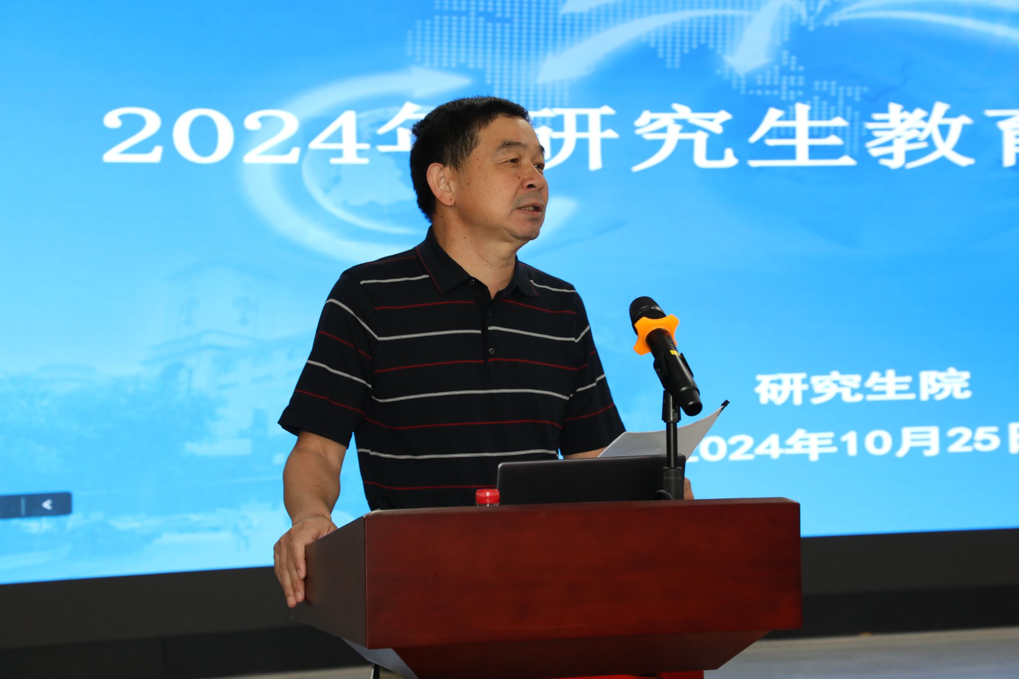 會上,劉濟科副校長以深入學習貫徹習近平總書記關(guān)于教育的重要論述和全國教育大會精神,推動研究生教育高質(zhì)量發(fā)展為主線,就進一步做好2025年研究生招生整體工作,以修訂研究生培養(yǎng)方案、做好學位點周期性合格評估等工作為契機,建立健全學位點質(zhì)量保證體系,以及認真開展學位論文抽檢并科學應(yīng)用抽檢結(jié)果等內(nèi)容,進行了具體部署。他強調(diào),要進一步提高站位,統(tǒng)一認識,匯聚合力,認真貫徹落實立德樹人根本任務(wù),堅持以學生成長成才為中心,壓實職能部門與培養(yǎng)單位、導師的育人責任,嚴格規(guī)范地把好“入口關(guān)、過程關(guān)和出口關(guān)”,切實做好研究生教育各項工作。劉濟科副校長還代表學校對各培養(yǎng)單位為學校研究生教育工作的付出與貢獻表示了感謝。