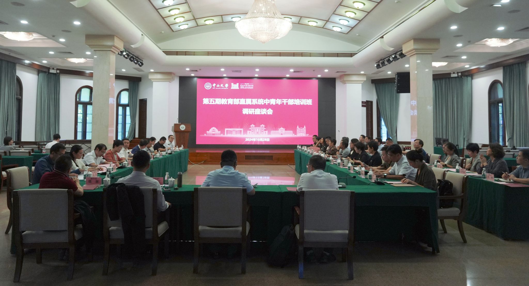 中大新聞網(wǎng)訊(通訊員陳美琪)近日,第五期教育部直屬系統(tǒng)中青年干部培訓(xùn)班廣東調(diào)研團(tuán)(以下簡(jiǎn)稱“調(diào)研團(tuán)”)到我校調(diào)研交流。10月28日下午,調(diào)研座談會(huì)在南校園懷士堂召開,圍繞推進(jìn)教育、科技、人才深度融合的新思路、新舉措,尤其是創(chuàng)新人才培養(yǎng)的有效實(shí)踐及有組織科研的探索與經(jīng)驗(yàn);弘揚(yáng)教育家精神、加強(qiáng)教師隊(duì)伍建設(shè)的探索等主題開展交流。學(xué)校黨委常委、副校長(zhǎng)劉濟(jì)科,校長(zhǎng)助理匡銘及相關(guān)單位負(fù)責(zé)人參加調(diào)研。座談會(huì)由學(xué)校黨委常委、組織部部長(zhǎng)楊曉萌主持。