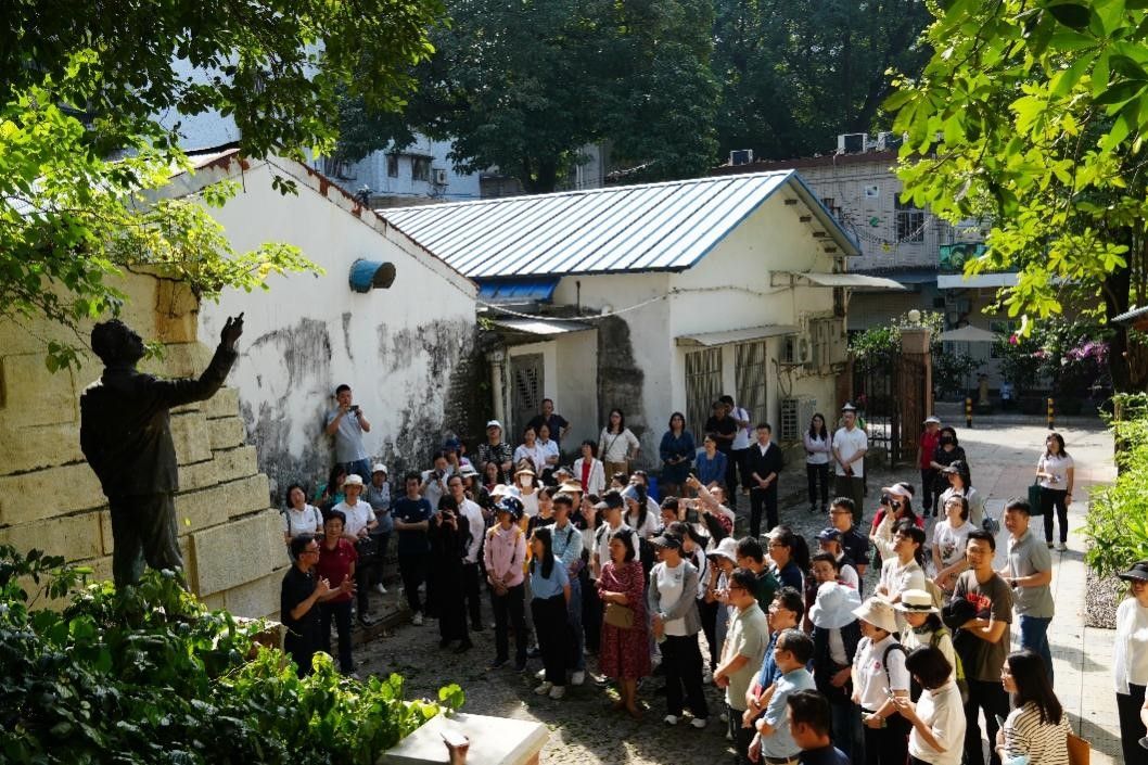 活動(dòng)第一站來(lái)到中山大學(xué)最早的辦學(xué)校址——廣州市越秀區(qū)文明路,并參訪了標(biāo)志性建筑大鐘樓(現(xiàn)為魯迅紀(jì)念館)。曹教授為大家梳理了大鐘樓歷史功能的演變,著重介紹了大鐘樓在中大早期辦學(xué)過(guò)程中作為主要辦公和教育場(chǎng)所發(fā)揮的重要作用。曹教授強(qiáng)調(diào),中山大學(xué)自創(chuàng)立之初,就冠以“國(guó)立”之名,學(xué)校的發(fā)展始終與國(guó)家的發(fā)展、民族的命運(yùn)緊密相連,新時(shí)代中大人更應(yīng)厚植家國(guó)情懷,勇?lián)鷷r(shí)代使命,為教育強(qiáng)國(guó)建設(shè)貢獻(xiàn)力量。隨后,大家一同參觀了魯迅紀(jì)念館的展陳,曹教授時(shí)不時(shí)補(bǔ)充介紹魯迅先生與中山大學(xué)的故事。