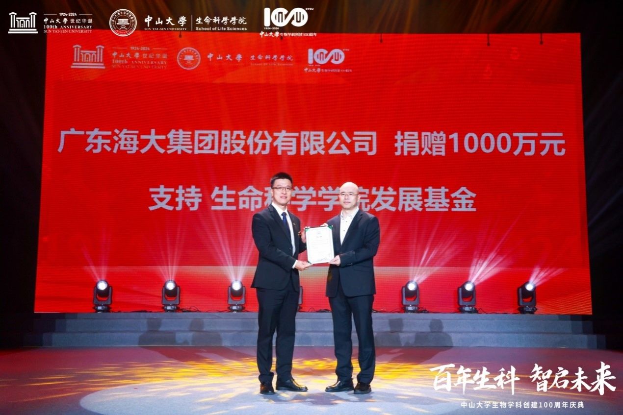 謝湜副校長(zhǎng)代表中山大學(xué)接受廣東海大集團(tuán)股份有限公司的捐贈(zèng)
