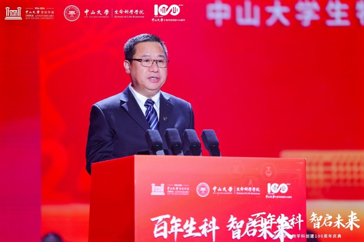 我校黨委朱孔軍書記首先代表學(xué)校對(duì)到場(chǎng)的嘉賓、校友、師生致以最熱烈的歡迎和最誠(chéng)摯的感謝。朱書記高度贊揚(yáng)了生物學(xué)科在百年歷程中取得的輝煌成就,他指出,如今的生命科學(xué)學(xué)院黨建工作、人才培養(yǎng)成效和科研實(shí)力穩(wěn)步提升,服務(wù)國(guó)家重大戰(zhàn)略能力顯著增強(qiáng)。在下一個(gè)百年新征程中,學(xué)校衷心期盼學(xué)院能繼續(xù)弘揚(yáng)中大生科百年精神,以科技發(fā)展、國(guó)家戰(zhàn)略需求為牽引,努力開拓創(chuàng)新,不斷提升生物學(xué)科的整體實(shí)力和辦學(xué)水平,他提了三點(diǎn)期望,一是要堅(jiān)持黨的全面領(lǐng)導(dǎo),推動(dòng)黨建與事業(yè)深度融合。二是要勇于深化教育改革,全面賦能創(chuàng)新人才培養(yǎng)。三是要提高科技創(chuàng)新水平,更好服務(wù)國(guó)家和廣東高質(zhì)量發(fā)展。他表示,學(xué)校將一如既往地支持生命科學(xué)學(xué)科的建設(shè)和發(fā)展,希望學(xué)院在社會(huì)各界和廣大校友的關(guān)心支持下,在全體師生的團(tuán)結(jié)拼搏下,開啟生科輝煌的新篇章!