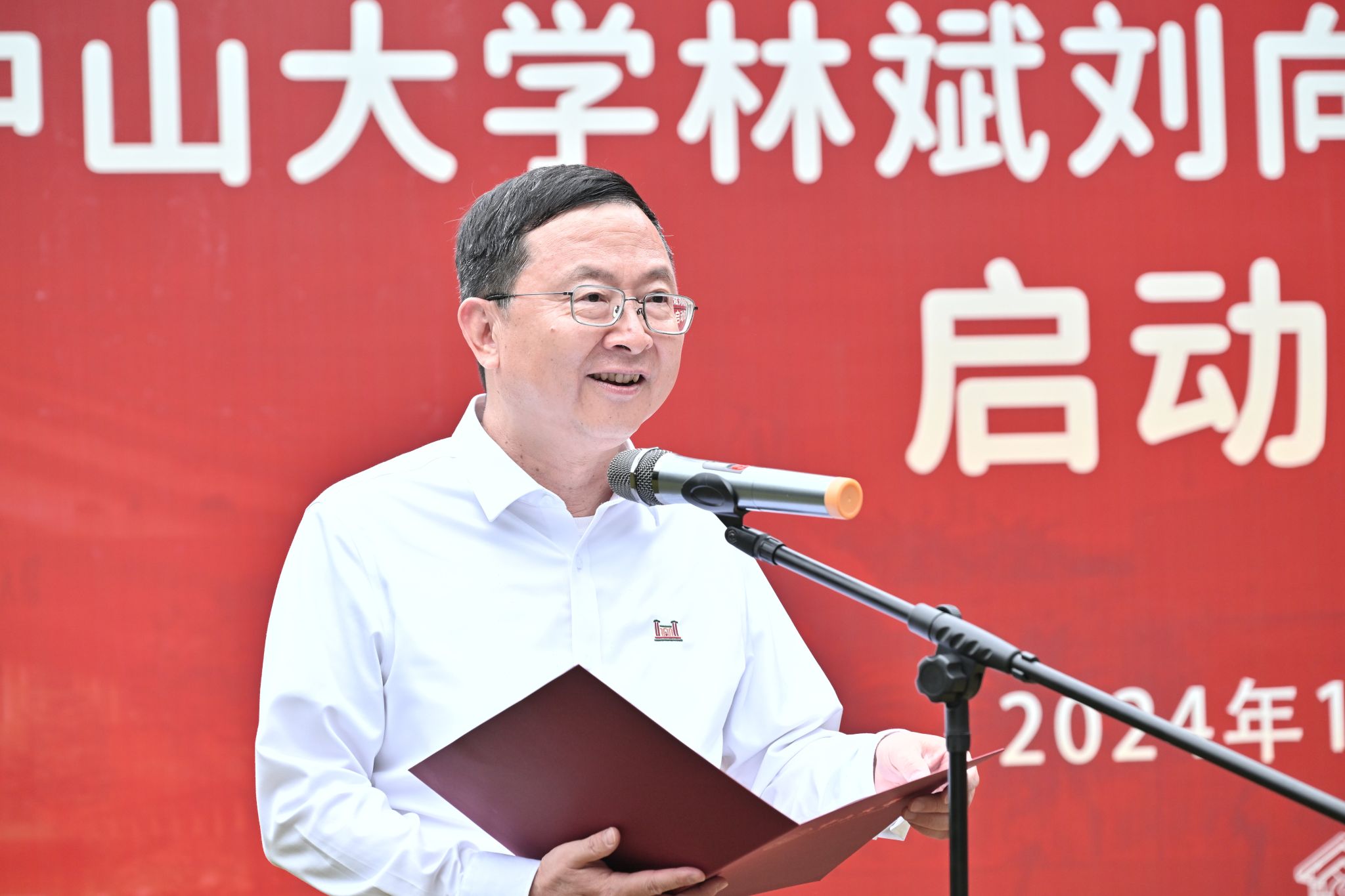 中山大學黨委書記朱孔軍,校長高松院士,黨委副書記、紀委書記刁振強,副校長楊東華,副校長謝湜,丘海明老師及學校部分職能部門負責人、師生代表現(xiàn)場觀禮,活動由謝湜副校長主持。