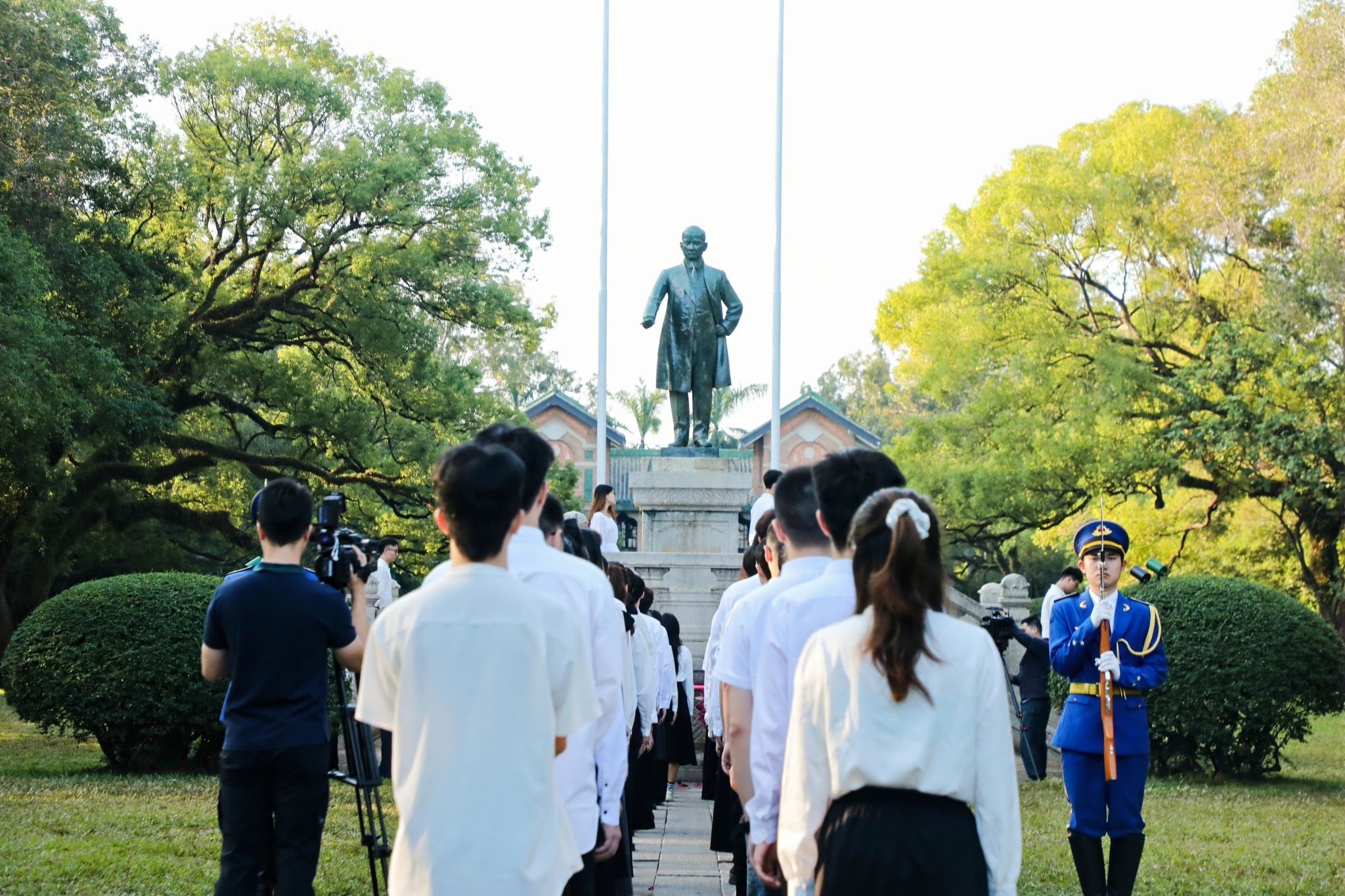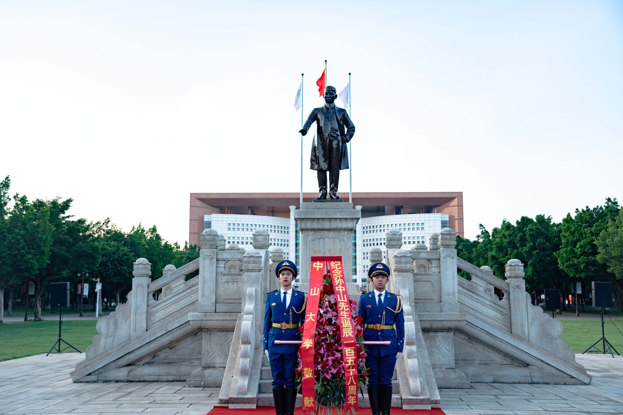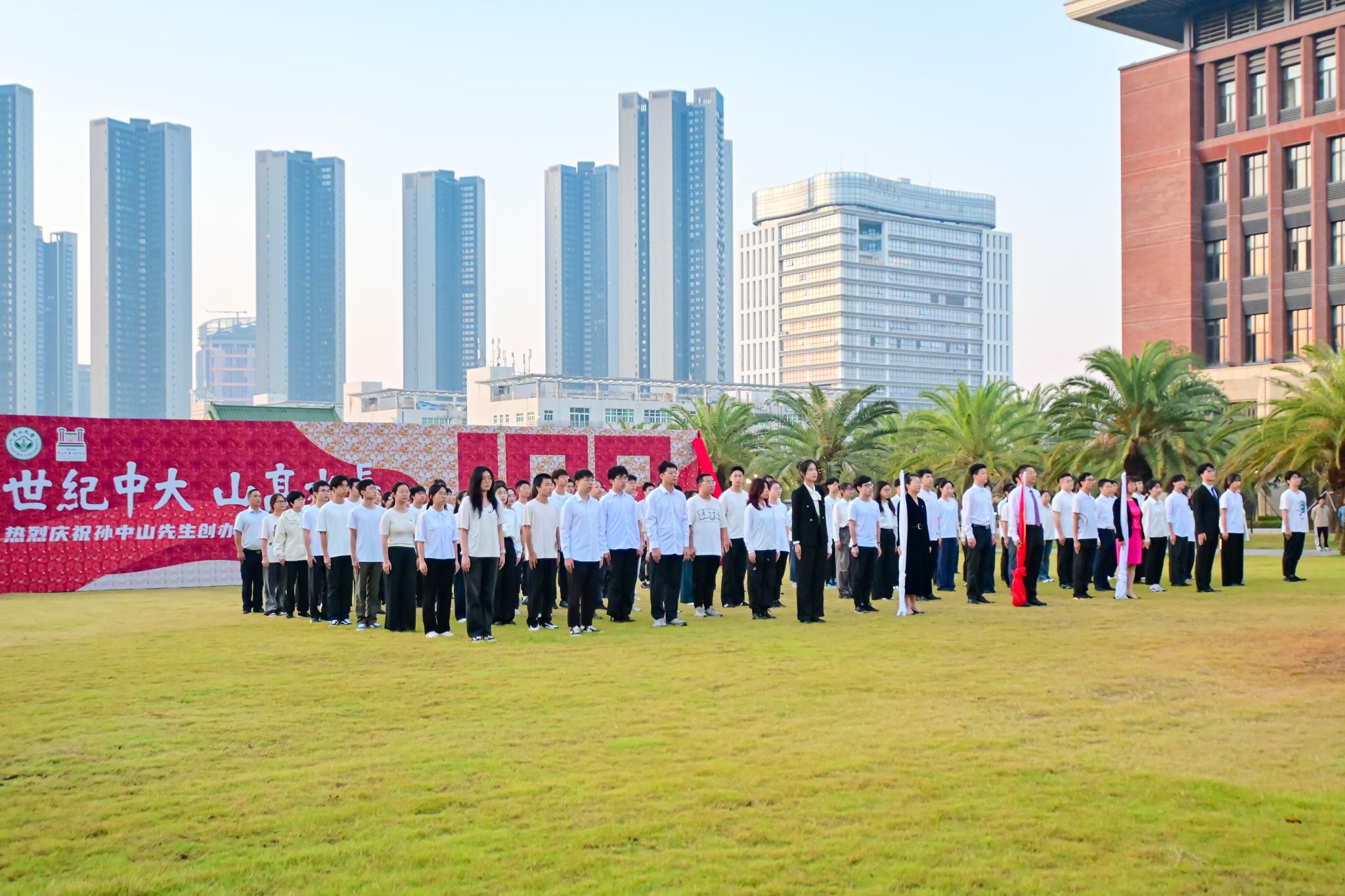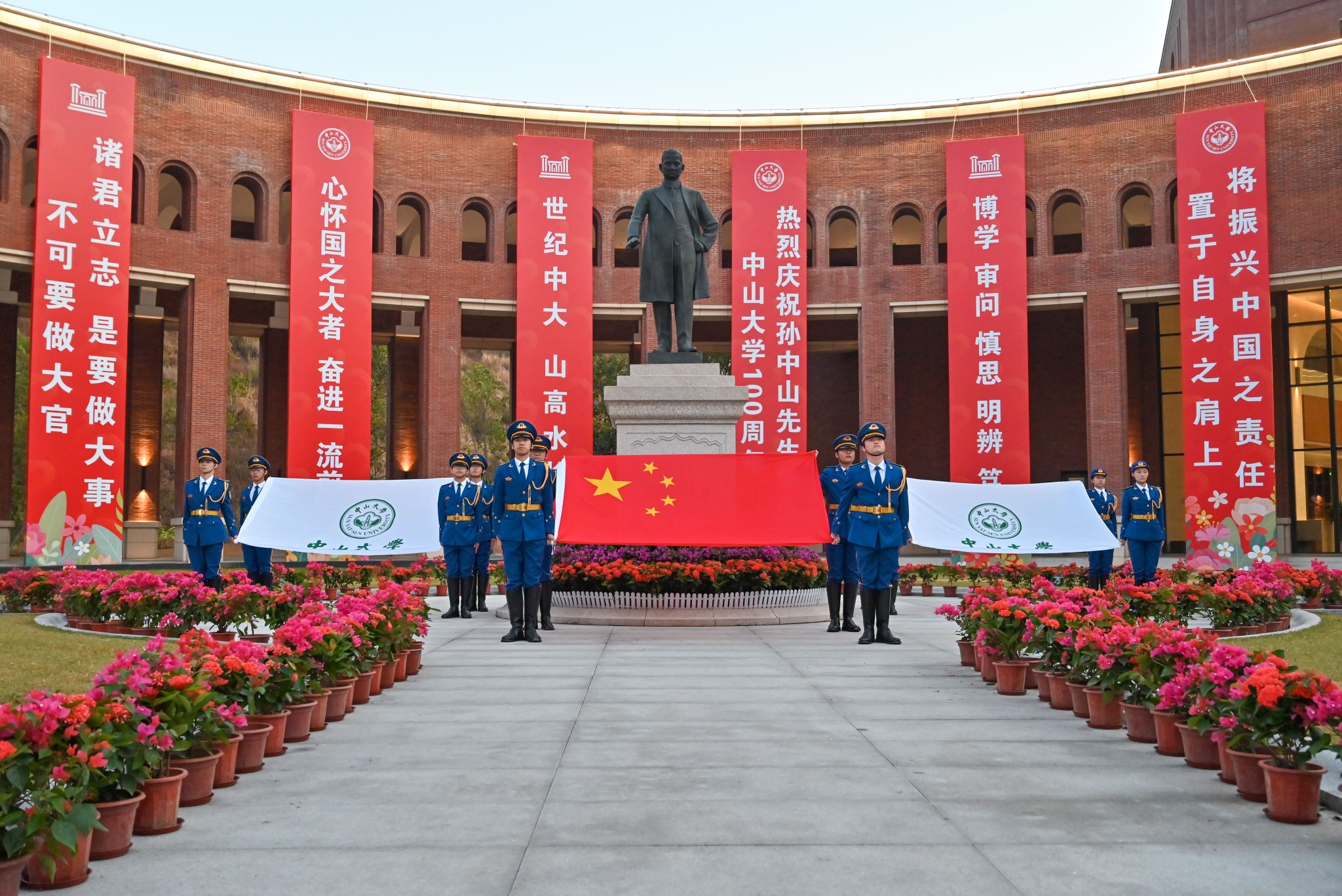 11月12日是中國民主革命的偉大先驅孫中山先生誕辰158周年紀念日。100年前,孫中山先生親手創(chuàng)辦中山大學,寄望學生擔負起振興中華的責任。為了紀念中山先生,11月12日也成為了中山大學的校慶日。迎著朝陽,廣州校區(qū)南校園、北校園、東校園,珠海校區(qū)和深圳校區(qū)已聚集了許多前來觀禮的師生。