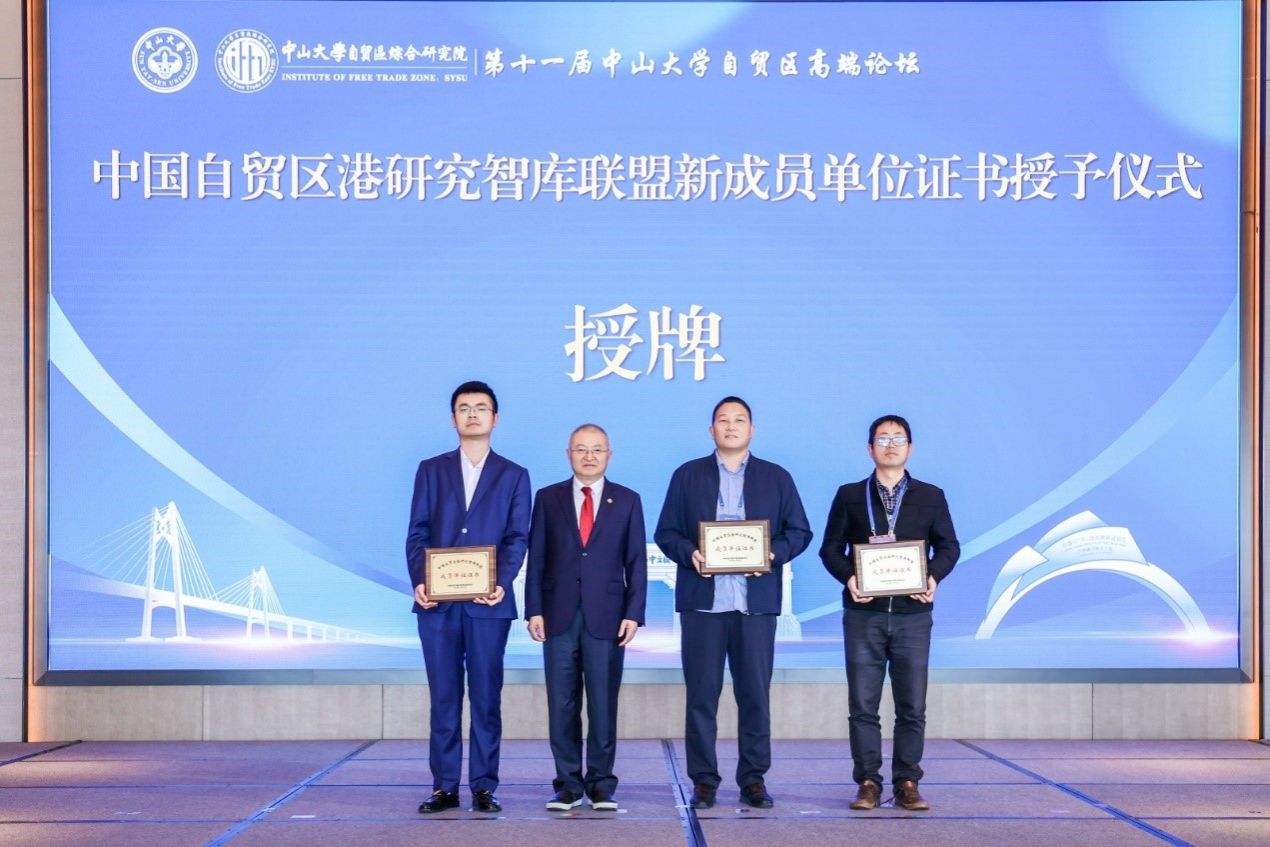 論壇現(xiàn)場,正式發(fā)布了《2023-2024年度中國自由貿(mào)易試驗區(qū)發(fā)展報告》,同時舉行了在“2023-2024年度中國自由貿(mào)易試驗區(qū)制度創(chuàng)新十佳案例”頒獎環(huán)節(jié)和中國自貿(mào)區(qū)港研究智庫聯(lián)盟新成員單位證書授予儀式。李善民為來自對外經(jīng)濟(jì)貿(mào)易大學(xué)、云南大學(xué)和東北財經(jīng)大學(xué)三個新成員單位代表授予了聯(lián)盟成員證書。