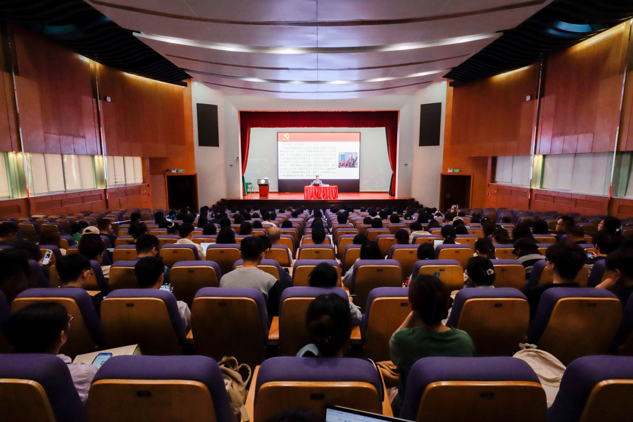 張浩教授以“讓偉大建黨精神綻放時(shí)代光芒”為題,深入淺出地講解了什么是偉大建黨精神、偉大建黨精神的歷史作用和時(shí)代價(jià)值以及如何準(zhǔn)確把握偉大建黨精神的實(shí)踐要求。勉勵(lì)廣大師生繼續(xù)弘揚(yáng)光榮傳統(tǒng)、賡續(xù)紅色血脈,自覺(jué)做共產(chǎn)主義遠(yuǎn)大理想和中國(guó)特色社會(huì)主義共同理想的堅(jiān)定信仰者和忠實(shí)實(shí)踐者,既要善于增強(qiáng)使命意識(shí)來(lái)抓住機(jī)遇,又要善于發(fā)揚(yáng)斗爭(zhēng)精神應(yīng)對(duì)挑戰(zhàn),做到既利用世界百年未有之大變局的正向因素推進(jìn)中華民族偉大復(fù)興,又通過(guò)推進(jìn)中華民族偉大復(fù)興推動(dòng)世界百年未有之大變局正向發(fā)展。