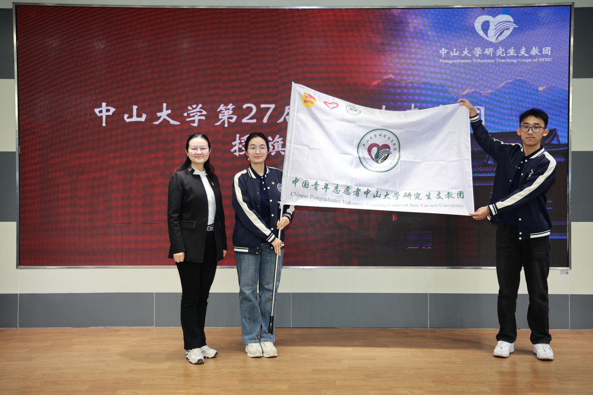 張琪副書記莊重地將支教團(tuán)旗幟交到第27屆研究生支教團(tuán)代表手中。