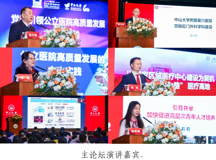 論壇主題報告環(huán)節(jié)邀請了中山大學(xué)腫瘤防治中心黨委書記武少新、復(fù)旦大學(xué)附屬中山醫(yī)院黨委副書記李耘、中山大學(xué)中山眼科中心院長林浩添、中山大學(xué)附屬第六醫(yī)院院長吳小劍、中山大學(xué)附屬醫(yī)院喀什醫(yī)院院長肖非、中山大學(xué)附屬口腔醫(yī)院院長陳莉莉分別圍繞“黨建引領(lǐng)公立醫(yī)院高質(zhì)量發(fā)展”、“學(xué)科融合與醫(yī)工交叉”、“學(xué)科建設(shè)”、“國家區(qū)域醫(yī)療中心建設(shè)與醫(yī)療幫扶”、“高層次青年人才培養(yǎng)”的主題分享了各家醫(yī)院的特色做法與服務(wù)健康中國建設(shè)的突出成效,展現(xiàn)了中大醫(yī)科在服務(wù)人民生命健康方面的貢獻(xiàn),交流了醫(yī)療界同行在醫(yī)院高質(zhì)量發(fā)展中的經(jīng)驗做法。