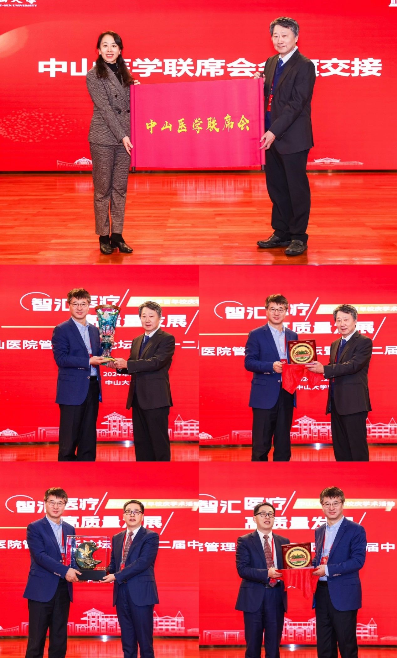 交接中山醫(yī)學(xué)聯(lián)席會會旗、與臺灣中山醫(yī)學(xué)大學(xué)、廈門大學(xué)附屬中山醫(yī)院互贈禮物