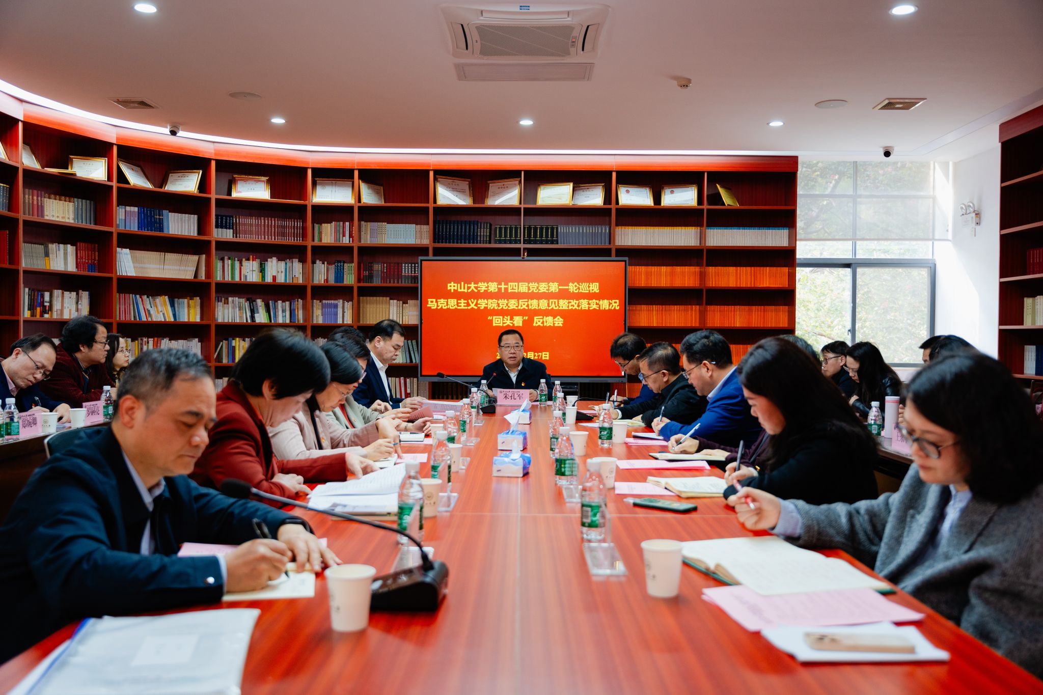 “回頭看”第一巡視組組長(zhǎng)羅干坤宣讀了《中山大學(xué)第十四屆黨委第一輪巡視馬克思主義學(xué)院黨委反饋意見(jiàn)整改落實(shí)情況“回頭看“的反饋意見(jiàn)》。馬克思主義學(xué)院黨委書(shū)記陳有志作表態(tài)發(fā)言。學(xué)校黨委副書(shū)記、聯(lián)系馬克思主義學(xué)院校領(lǐng)導(dǎo)王帆,學(xué)校黨委常委、組織部部長(zhǎng)楊曉萌,紀(jì)委副書(shū)記吳長(zhǎng)征,黨委巡視工作辦公室主任謝曼華,馬克思主義學(xué)院黨政領(lǐng)導(dǎo)班子成員,黨支部書(shū)記,教研室主任,教職工、學(xué)生代表等40余人參加會(huì)議。